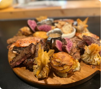 Each table of 2 or 4 will enjoy a shared platter featuring three delicious cuts of meat, paired with flavorful sauces and hearty sides — a perfect way to taste, share, and enjoy together.